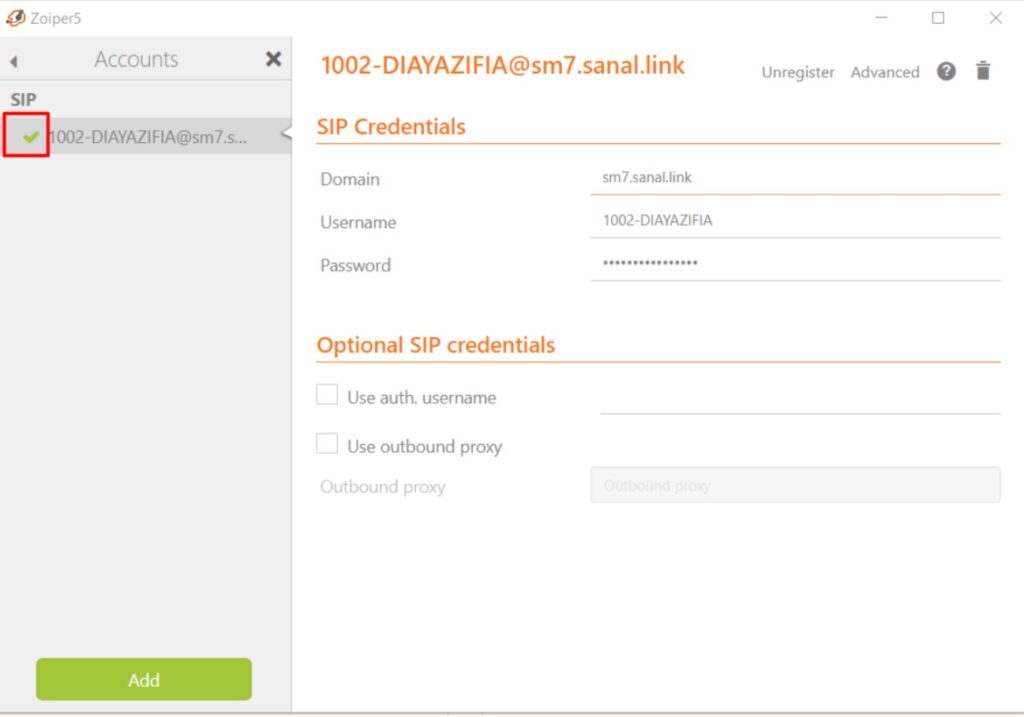 Zoiper uygulamasında Sanal Santral entegrasyonunun olması için öncelikle uygulama üzerinden Ayarlar-Hesap Ayarları alanına geçiş yapılarak Dahili Bilgileri ve Dahili Şifresi girilmelidir.